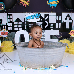 Little Michatarian is just the most smiley little superman ever! He really did not make me work hard for those cute dimples, and he loved smashing his cake!